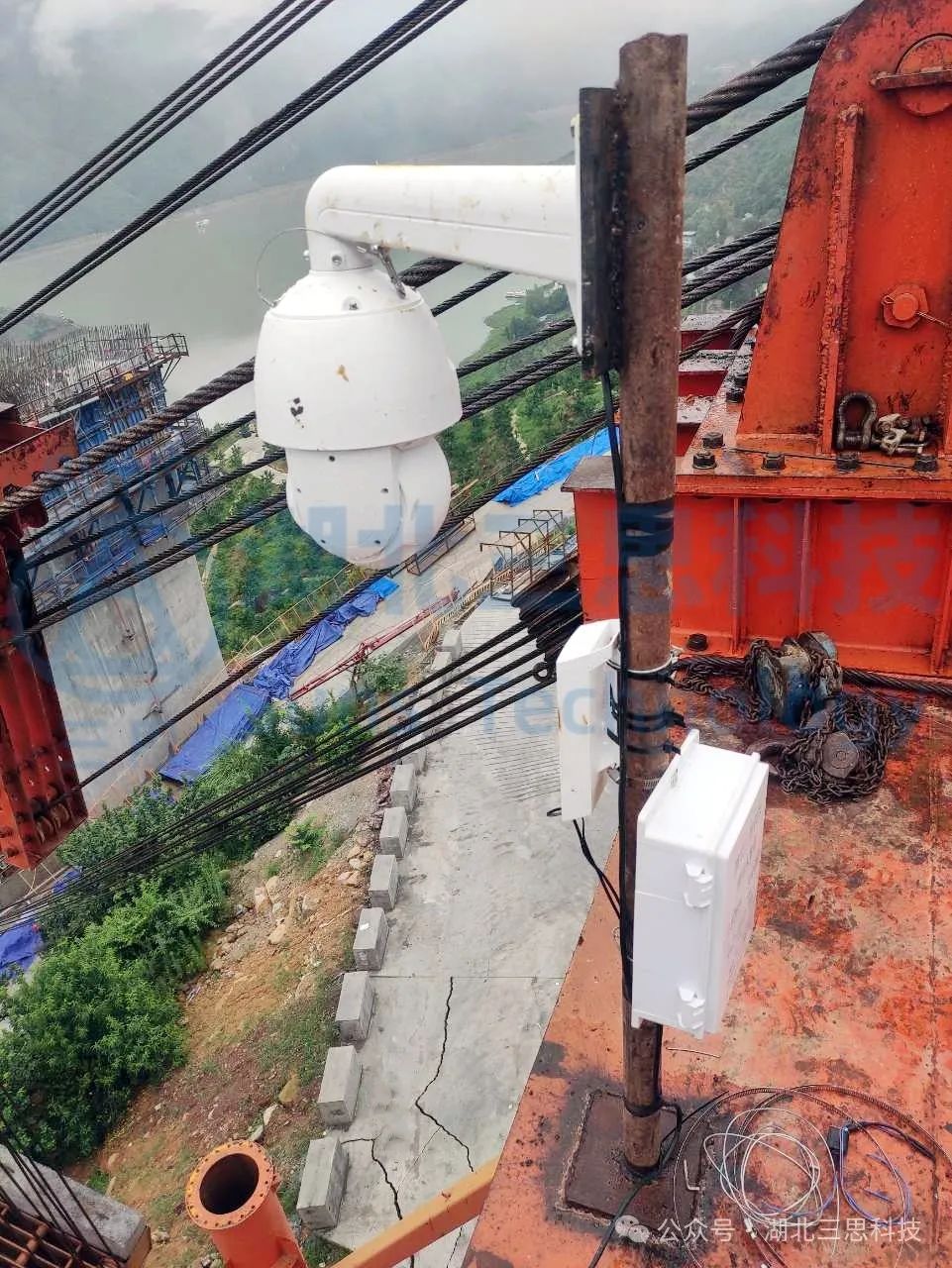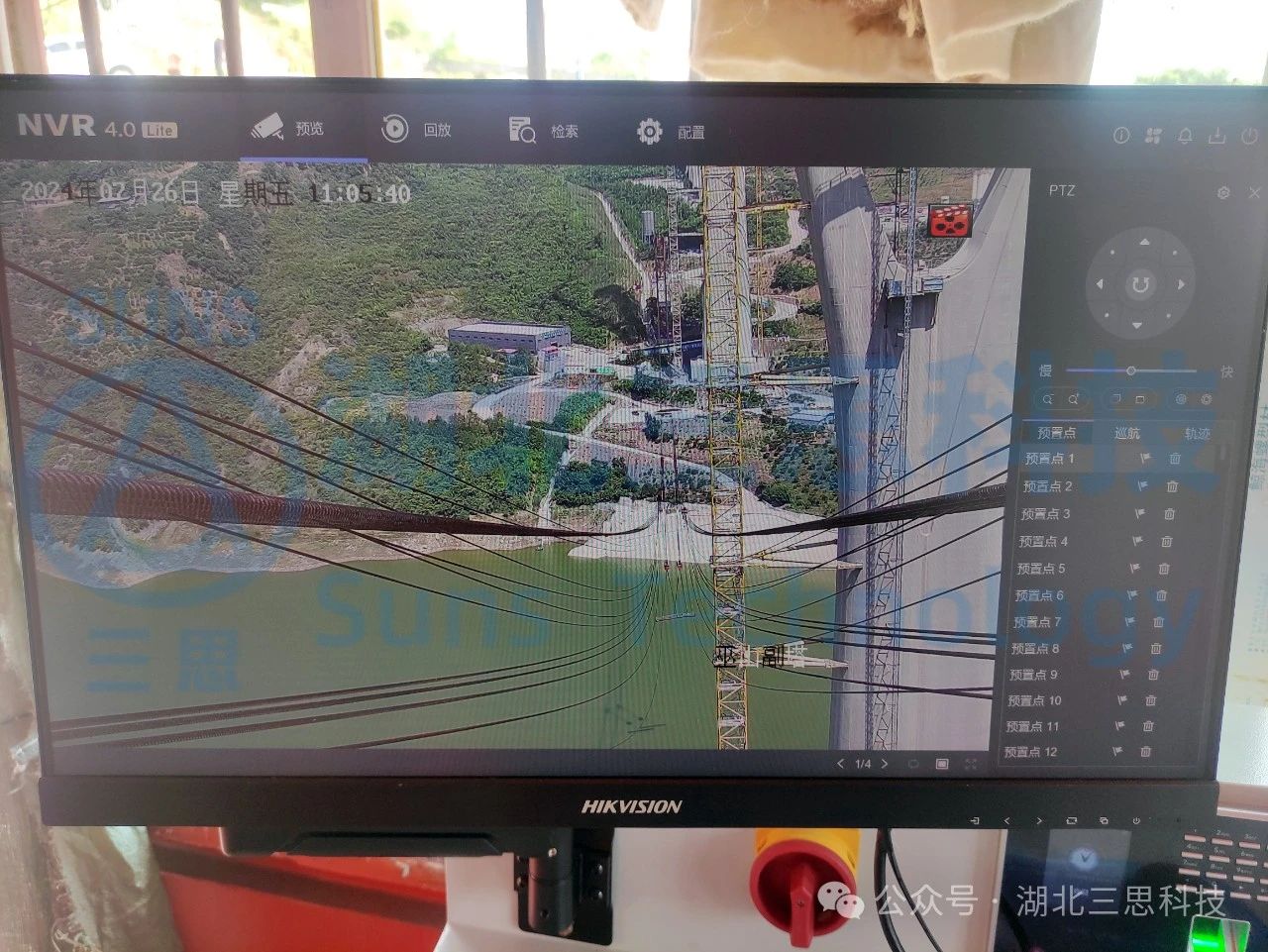 現(xiàn)場多臺槍機分別安裝在卷揚平臺附近,監(jiān)視卷揚的工作情況;兩個塔頂 各安裝多個球形攝像機用于鳥瞰纜索吊區(qū)域施工情況。