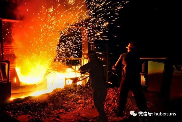 堅(jiān)守在四五十?dāng)z氏度的爐臺(tái)前的鋼廠(chǎng)各條生產(chǎn)線(xiàn)上的鋼鐵工人們,正揮汗如雨,把一包包鐵水冶煉成合格的鋼水。伴隨著陣陣的警鈴聲響,巨大的吊罐轟鳴著從頭頂快速滑過(guò),紅紅的火焰正從添料的爐口竄了出來(lái),熱氣逼人。轉(zhuǎn)爐口火光耀眼,轉(zhuǎn)爐內(nèi)熾熱的鋼水翻滾跳動(dòng),泛著灼人的光芒。