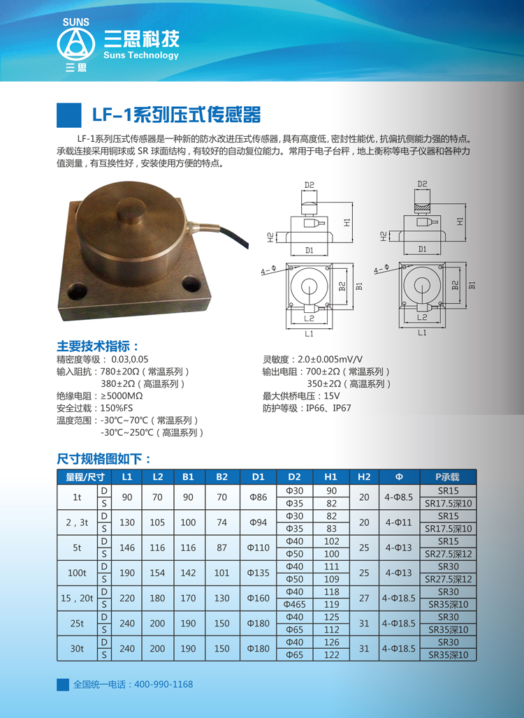 產(chǎn)品詳情 功能介紹 產(chǎn)品優(yōu)勢 參數(shù)/型號 包裝清單 產(chǎn)品詳情 LF-1系列壓式傳感器是一種新的防水改進壓式傳感器,具有高度低、密封性能優(yōu)、抗偏抗側(cè)能力強的特點。承載連接采用銅球或SR球面結(jié)構(gòu),有較好的自動復(fù)位能力。常用于電子臺秤、地上衡稱等電子儀器和各種力值測量,有互換性好、安裝使用方便的特點。 功能介紹 產(chǎn)品優(yōu)勢 參數(shù)/型號 包裝清單