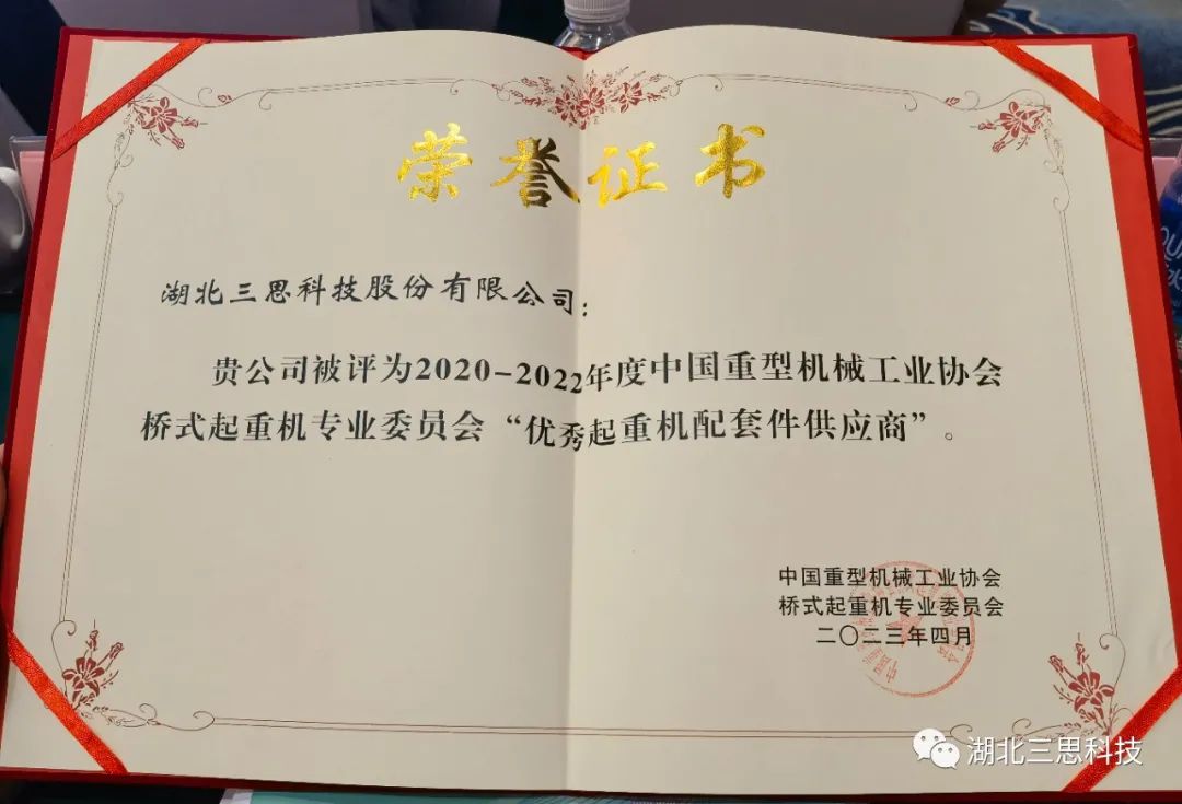 湖北三思科技,作為特種設備物聯(lián)網安全保護專家,本次榮獲2020-2022年度優(yōu)秀起重機配套件供應商,是起重行業(yè)以及客戶對于湖北三思科技20年來堅持和專業(yè)的認可,更是一份責任,未來湖北三思科技將繼續(xù)攜手協(xié)會,持續(xù)開放創(chuàng)新,用專業(yè)和服務守護特種設備的安全!