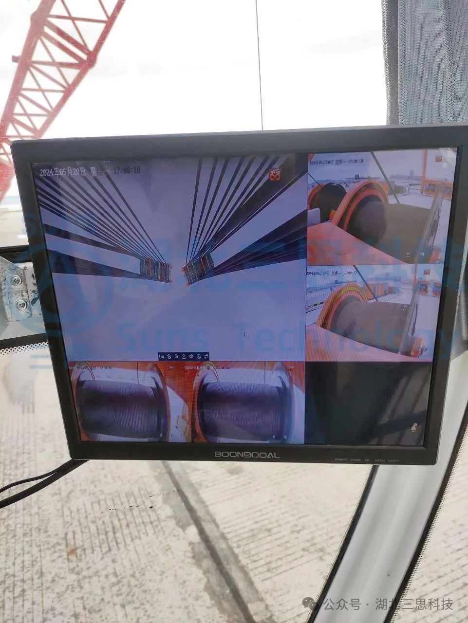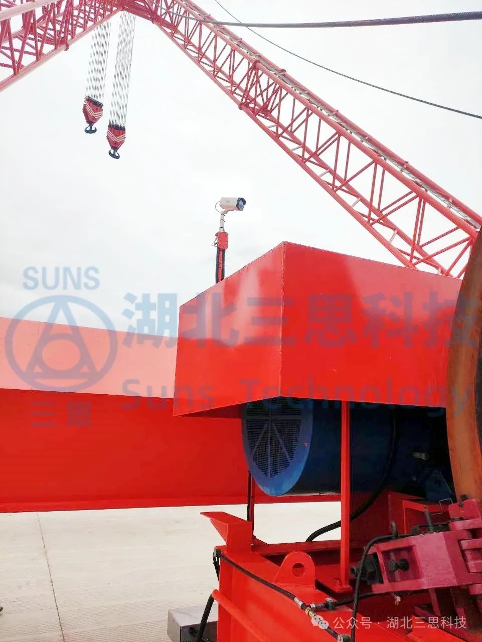 視頻監(jiān)控系統(tǒng)監(jiān)測桅桿吊的起升卷揚、變幅卷揚、吊裝區(qū)域,視頻顯示器放置于駕駛室中,給駕駛員帶來更加寬廣的操作視野,提高了桅桿吊操作便捷性。