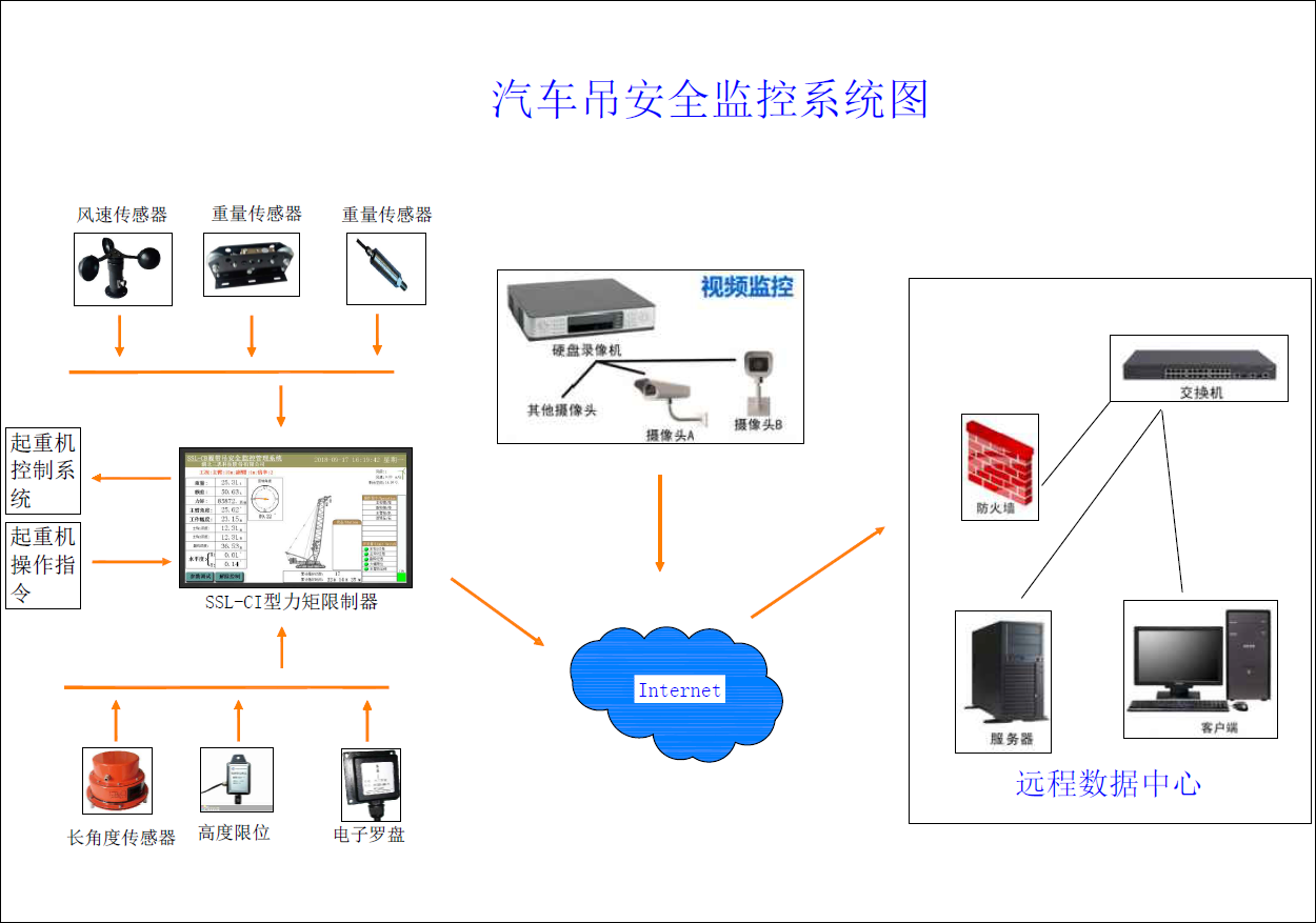 本汽車吊安全監(jiān)控管理系統(tǒng)由視頻監(jiān)控系統(tǒng)和安全監(jiān)控系統(tǒng)組成。