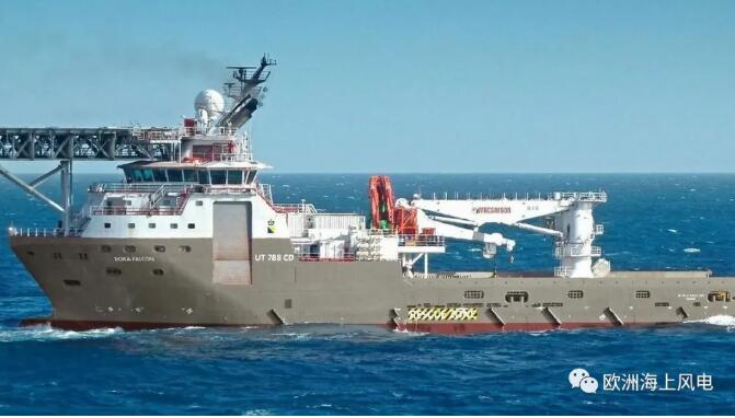 浮式基礎(chǔ)將從西班牙Ferrol被運(yùn)輸?shù)胶商m鹿特丹,在鹿特丹完成風(fēng)機(jī)吊裝,然后由Boskalis的Fjord號拖運(yùn)至現(xiàn)場。系泊安裝工作也同步進(jìn)行,Boka Falcon號將在本月底前完成錨和錨鏈的安裝。