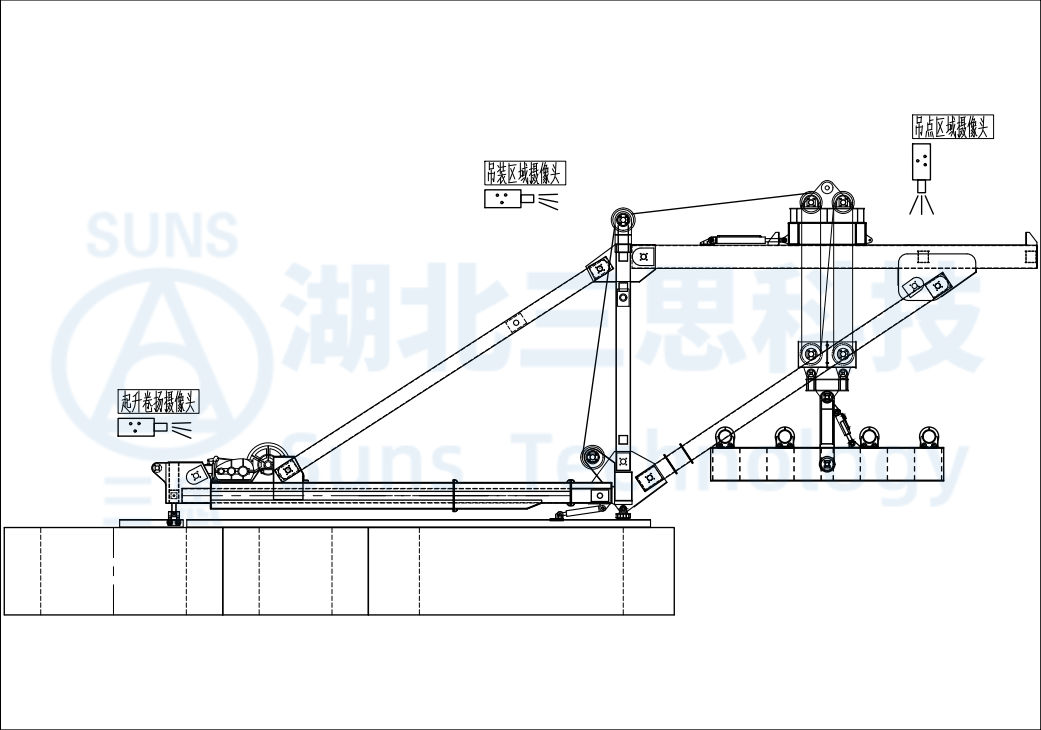 視頻監(jiān)控系統(tǒng)監(jiān)測橋面吊的卷揚狀態(tài)、吊點區(qū)域、吊裝區(qū)域,視頻顯示器放置于駕駛室中或者主機電箱內,給駕駛員帶來更加寬廣的操作視野,提高了橋面吊操作便捷性。
