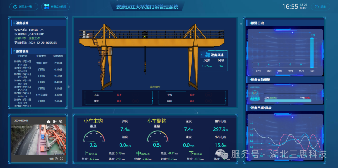 由湖北三思科技自主研發(fā)的龍門吊安全系統(tǒng)包含行程/高度傳感器、風(fēng)速儀、無線傳輸模塊、聲光報警、工業(yè)級高清攝像頭、主機(jī)、顯示屏、重量傳感器等硬件終端組成,利用微電子技術(shù)、信息傳感技術(shù)和即時通訊技術(shù),可實(shí)時監(jiān)控龍門吊運(yùn)行數(shù)據(jù)和操作行為,對設(shè)備可能出現(xiàn)的異常狀態(tài)、非正常操作等進(jìn)行預(yù)警,保證機(jī)械設(shè)備安全、穩(wěn)定運(yùn)行,降低安全隱患,減少安全事故發(fā)生,便于事故追溯,提高安全管理水平。