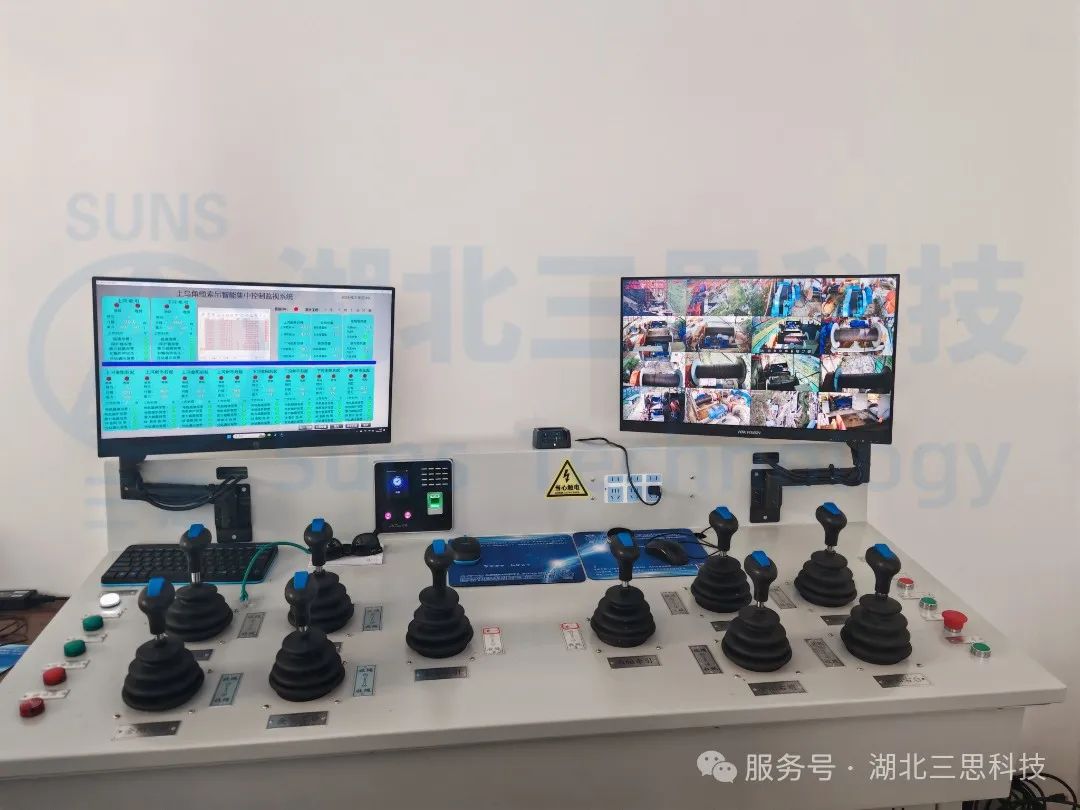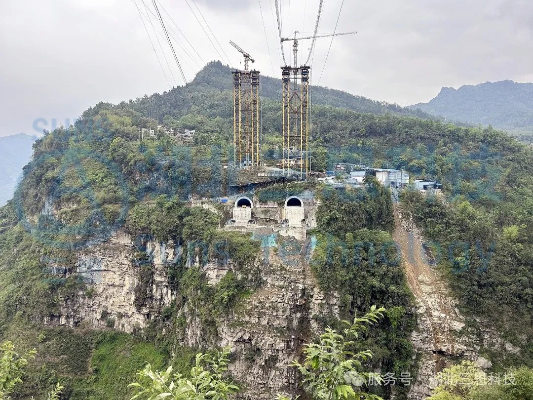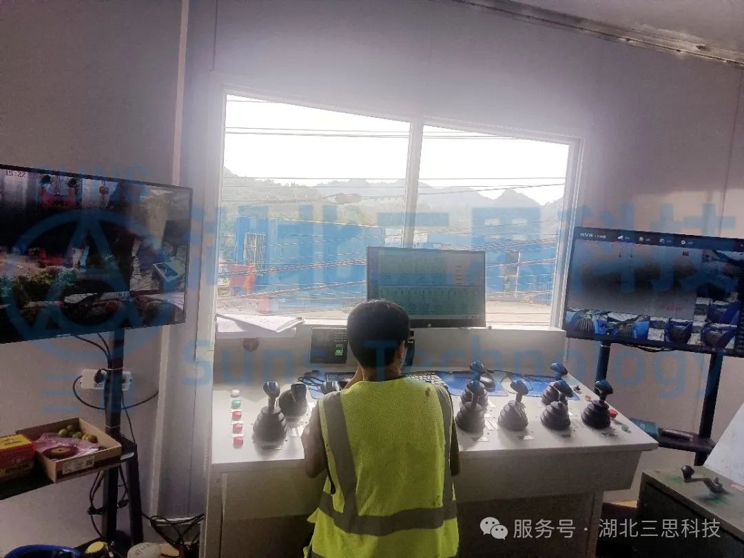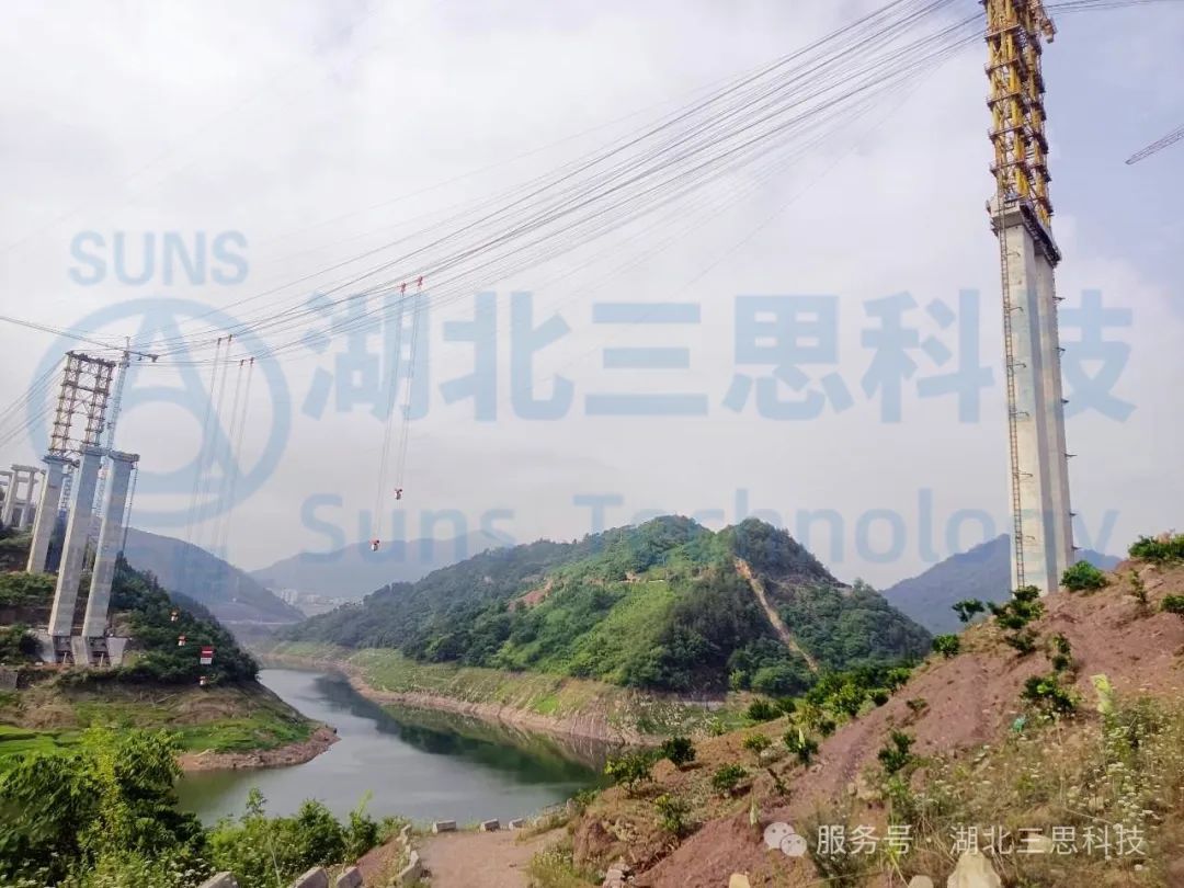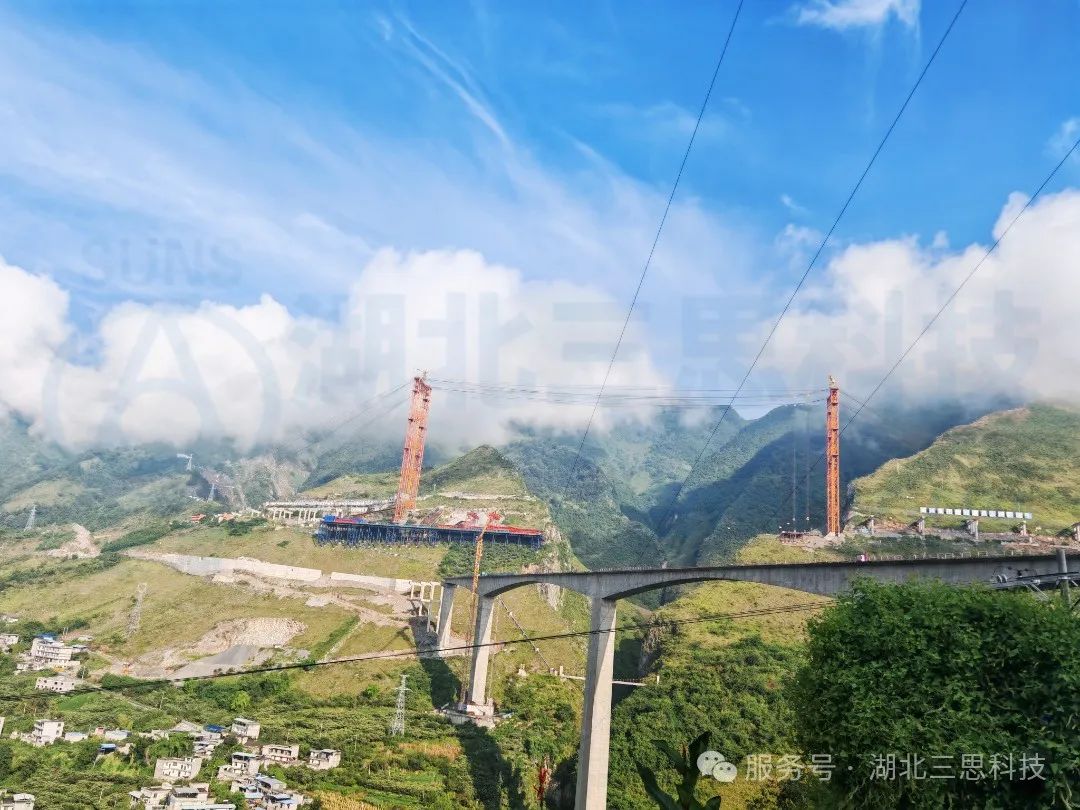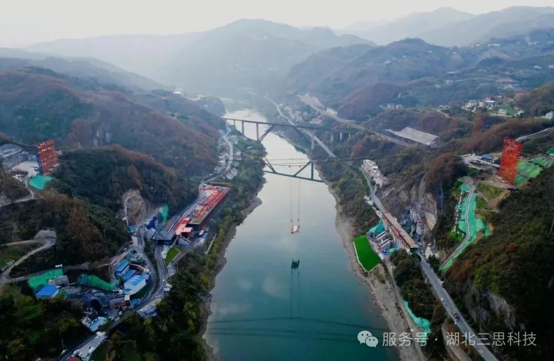 磨刀溪特大橋位于重慶市云陽縣,是重慶市高速公路開州至云陽高速(江口-云陽-龍缸段)區(qū)縣互聯(lián)互通的關(guān)鍵控制性工程,主橋為主跨360米的上承式鋼管混凝土拱橋。上部結(jié)構(gòu)采用預(yù)應(yīng)力混凝土先簡支后連續(xù)T梁,主跨為鋼管拱;下部結(jié)構(gòu)為樁基礎(chǔ)+擴(kuò)大基礎(chǔ),交界墩為空心薄壁墩,道路設(shè)計為雙向4車道,時速80km/h。該橋江口、龍缸兩岸拱座均背靠在陡峭的山體,垂直于磨刀溪河施工現(xiàn)場,有滑坡危巖、巖石裂隙發(fā)育,現(xiàn)場施工場地狹小、危險系數(shù)高、施工難度大。因此,本項目纜索吊機(jī)采用了由湖北三思科技自主研發(fā)的纜索吊機(jī)集中控制管理系統(tǒng),使設(shè)備的操作方式由傳統(tǒng)的“一人控制一機(jī)”升級為“一人控制多機(jī)”,同時設(shè)備在運(yùn)行過程中既可多機(jī)聯(lián)動,亦可單機(jī)獨動,為智能化安全管理提供有效保障。