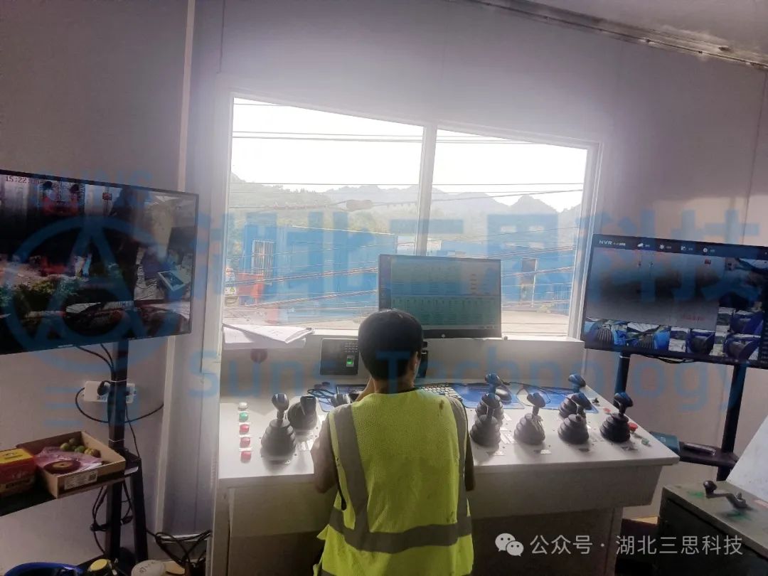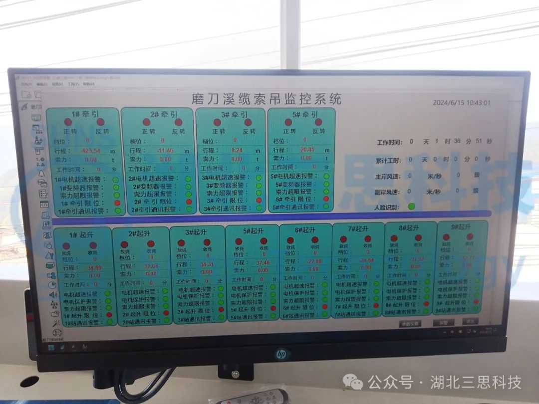該橋江口、龍缸兩岸拱座均背靠在陡峭的山體,垂直于磨刀溪河施工現(xiàn)場,有滑坡危巖、巖石裂隙發(fā)育,現(xiàn)場施工場地狹小、危險(xiǎn)系數(shù)高、施工難度大。因此,本項(xiàng)目纜索吊機(jī)采用了由湖北三思科技自主研發(fā)的纜索吊機(jī)集中控制管理系統(tǒng),使設(shè)備的操作方式由傳統(tǒng)的“一人控制一機(jī)”升級為“一人控制多機(jī)”,同時(shí)設(shè)備在運(yùn)行過程中既可多機(jī)聯(lián)動(dòng),亦可單機(jī)獨(dú)動(dòng),為智能化安全管理提供有效保障。