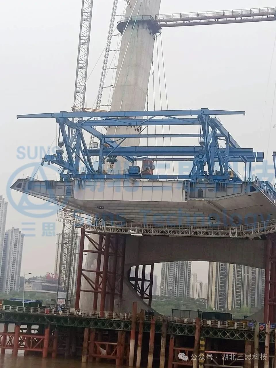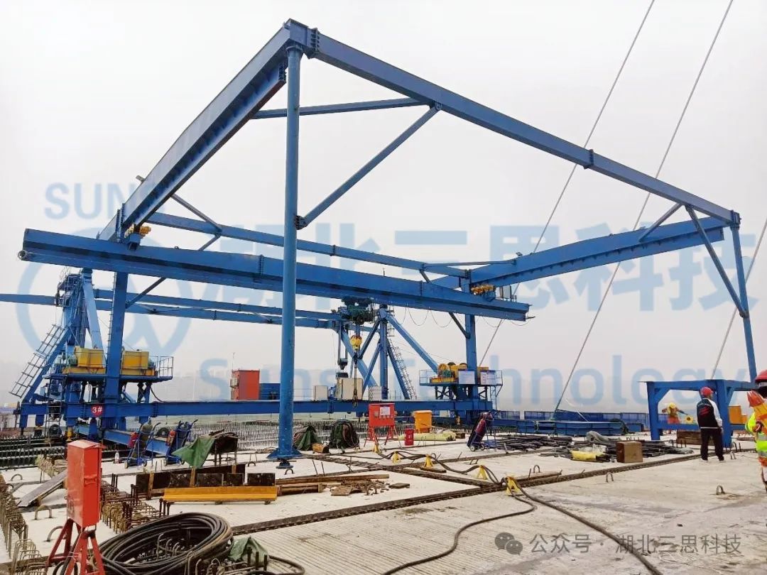 湖北三思科技此次參與的是一臺起重能力達900T的運架一體機,設備位于湖南某橋梁建設現(xiàn)場。